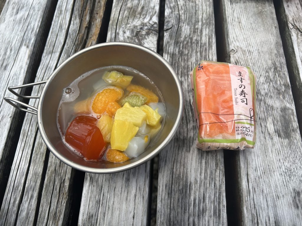 一方で、今回見えた自分の課題もあります。登っている間、行動食も昼食も喉を通らず、夏バテでしょうか?Sさんが用意してくれたフルーツポンチはスルッと入って、その勢いで鱒寿司も1つ食べられたのですが、白山のような山では平気で2,000kcalは消費します。食べられないとハンガーノックにもつながりかねないので、今後はどうカロリーを摂るのかも大事な課題です🧐