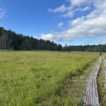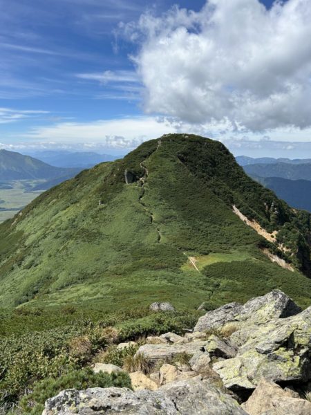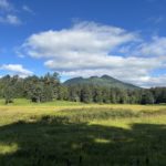 大きな水芭蕉の葉もありましたが、登山道脇のものは刈られていました。熊が水芭蕉の葉でもなんでも食べるため、管理上刈り取っているそうです。実際に大江湿原で大きな熊🐻が大疾走、大きな体が俊敏に動くので、見応えがありました。お相撲さんみたい☺️