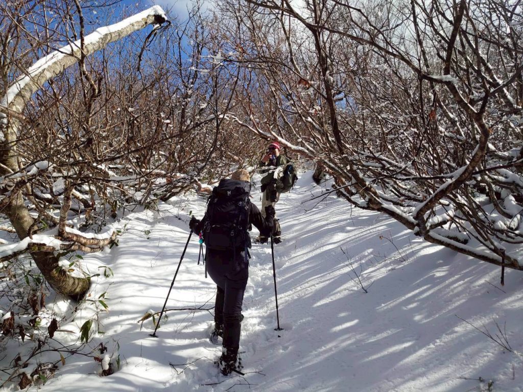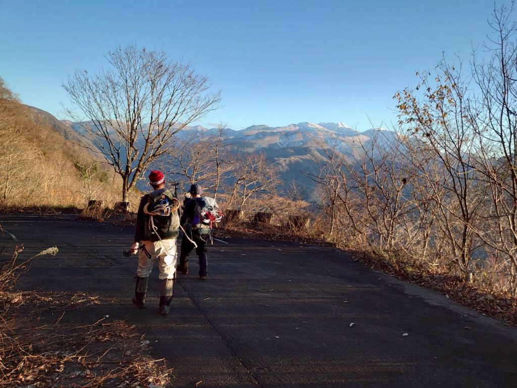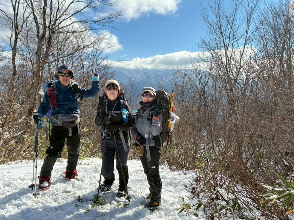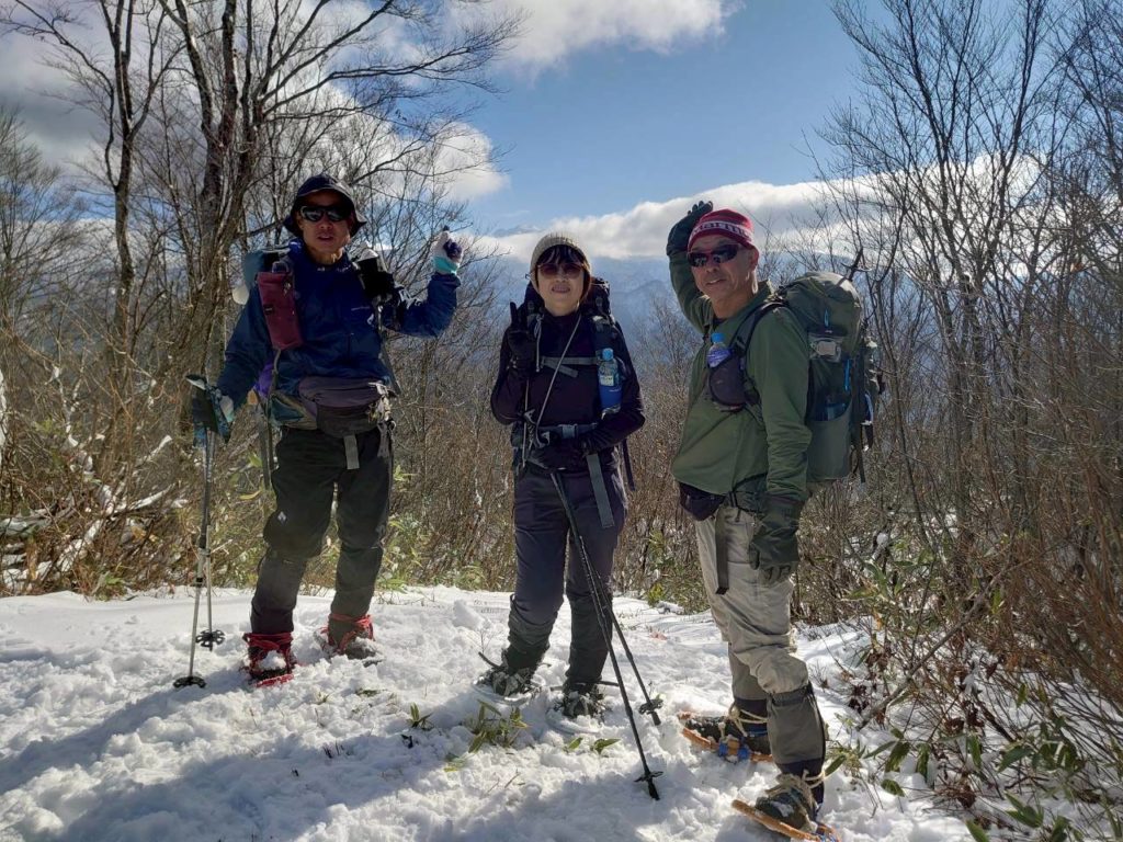 メンバー4名:S井、N谷、S本、K崎 旧中宮スキー場↑登山口よりピストン 8:00スタート 16:30下山 枯れ葉の秋山~標高も1200mを超えるとしっかり里の冬山に 各々、ワカン、アイゼン等履いてお試し 林道、山頂からは白山が良く見えました