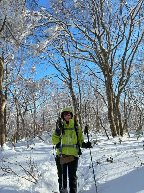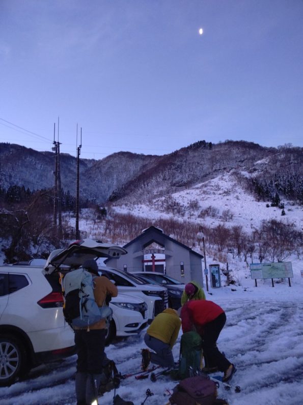 厳冬期の雪山。天気の急変や雪のついた地形への対応力、装備の使い方などが命と直結するため、それらの知識と技能の基礎を身に付けたくて、この度ベテランお二人に荒島岳同行をお願いしました。生徒1は努力家。目標をしっかり立てた上で、それに向かって尽力するタイプ。生徒2は、そもそもラッセルが好きではなく、特に厳冬期の雪山経験は乏しいです。心・技・体ともに自立している状態ではありません(;”∀”)